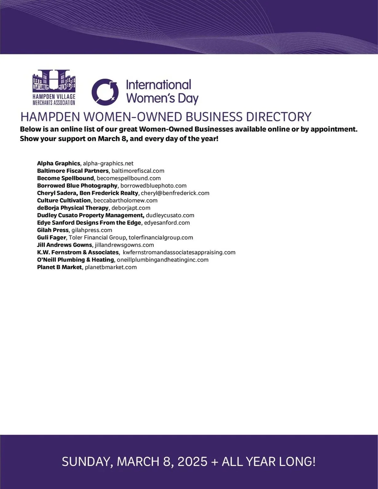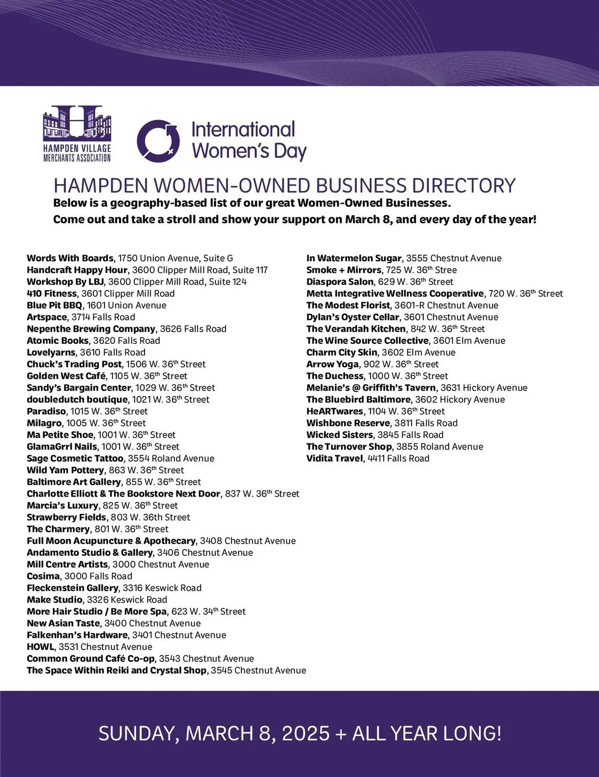 Come out and take a stroll and show your support for our Women-Owned Businesses on March 8, and every day of the year!